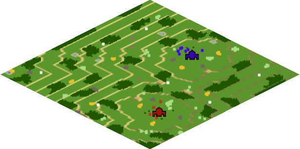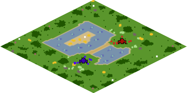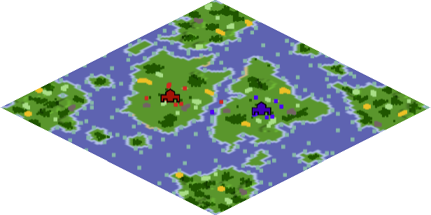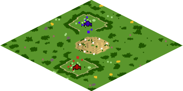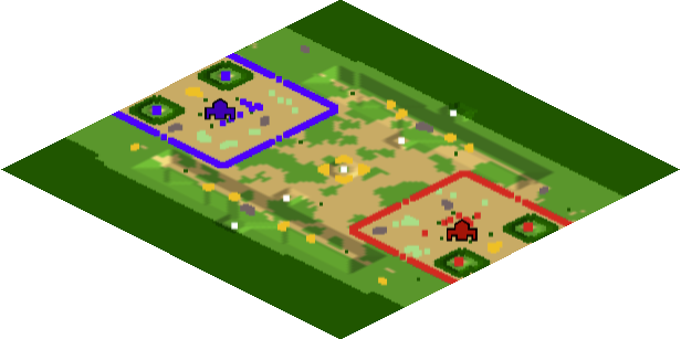 - Mehr als 50% der Seiten eines einem*r Spieler*in zugehörigen Gold-/Stein-/Buschvorkommen sind nicht erreichbar.