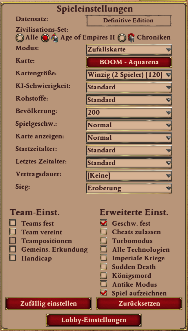 - Alle Spiele werden mit Age of Empires 2: Definitive Edition und aktuellen Patch gespielt.